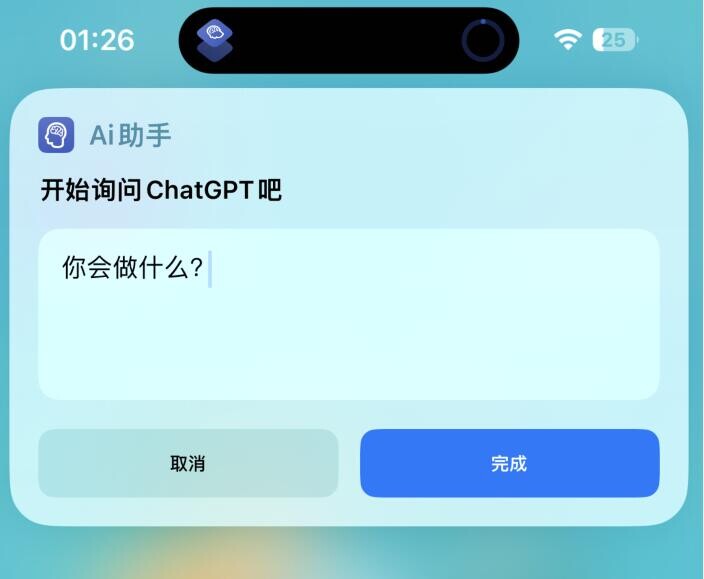 - 📱 在快捷命令中或桌面图标点击打开,在输入框下方的框中输入您的问题即可!
